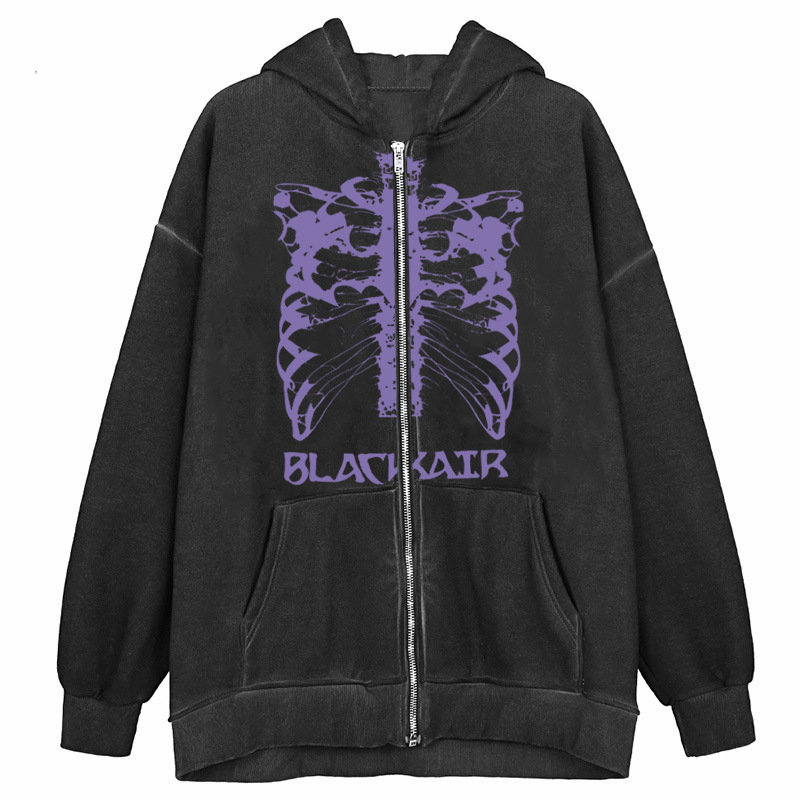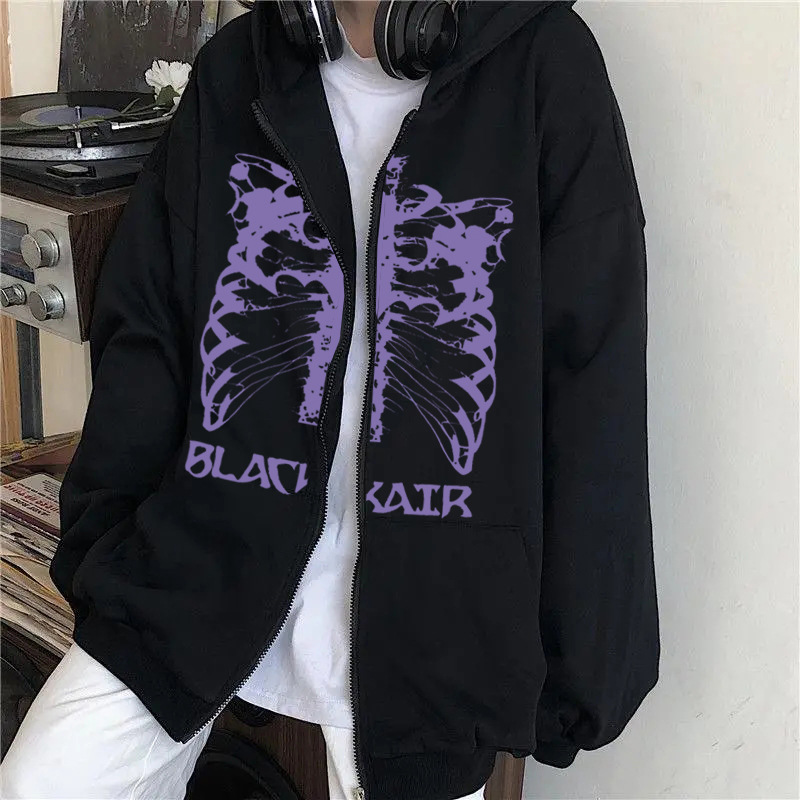Versatile Design: Hooded zipper top with a loose fit, suitable for casual and streetwear looks.