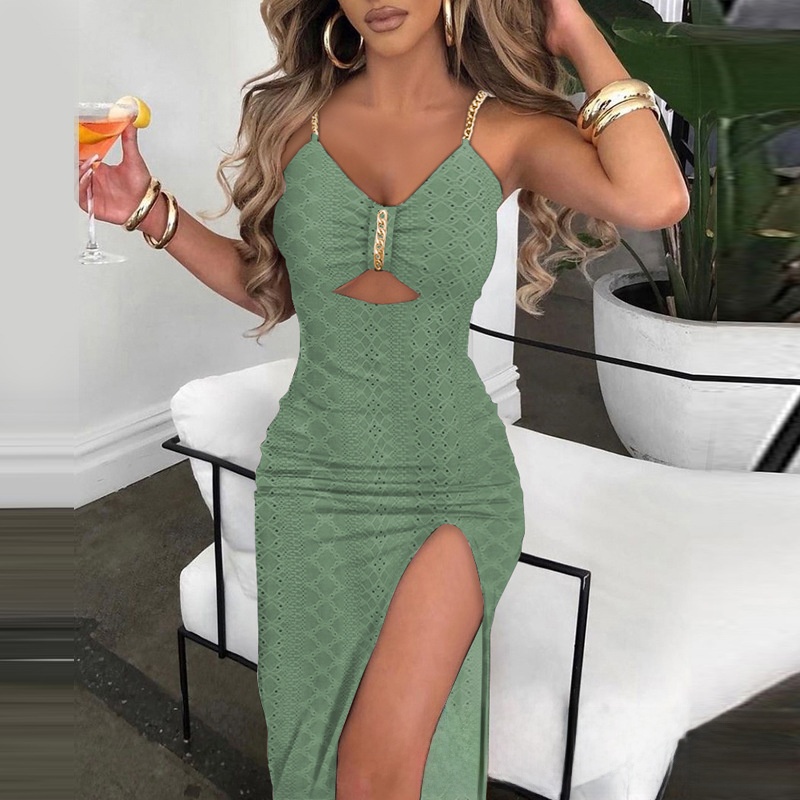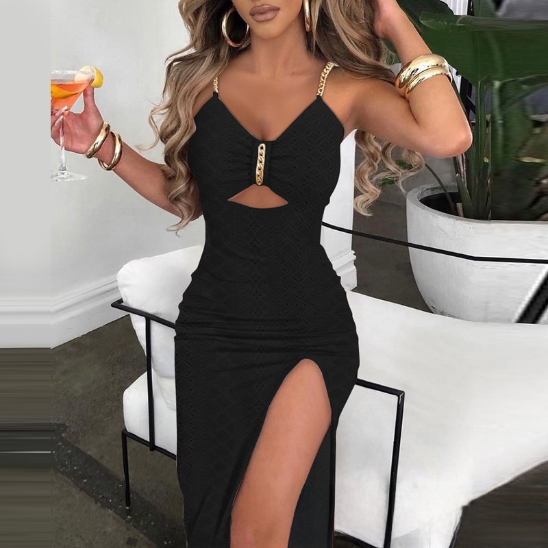 Summer Jacquard Sling Chain Hollow Party Dress