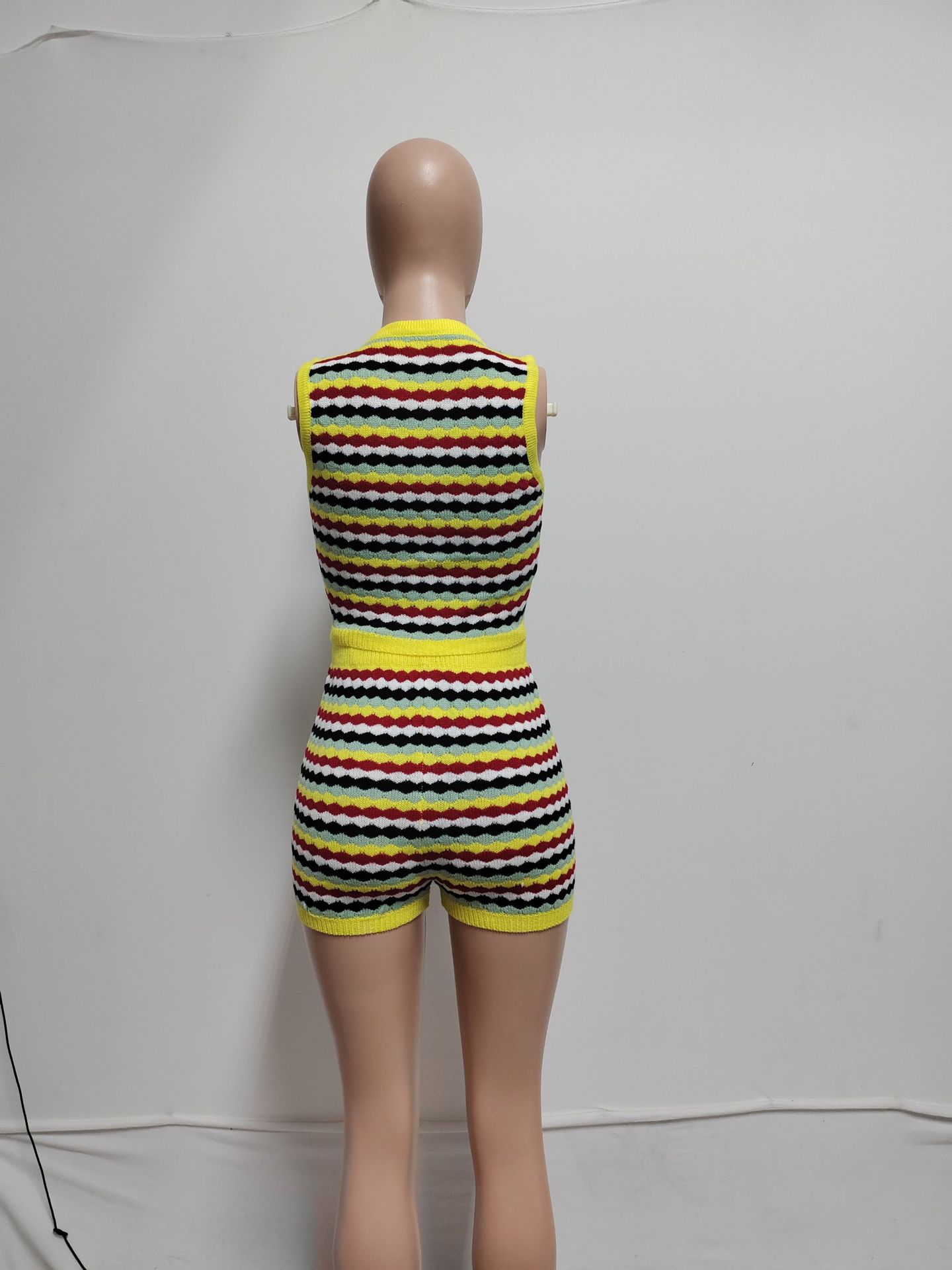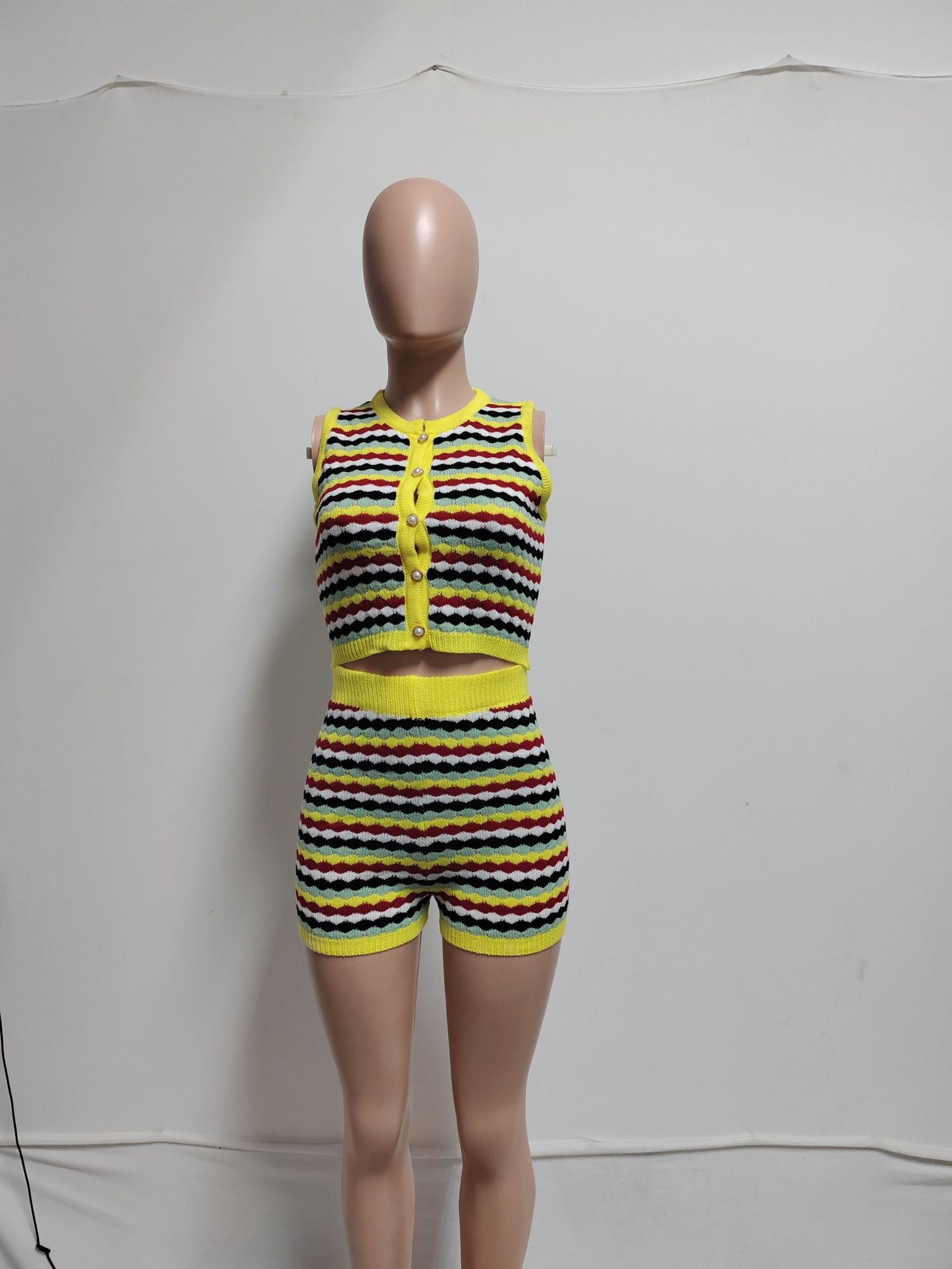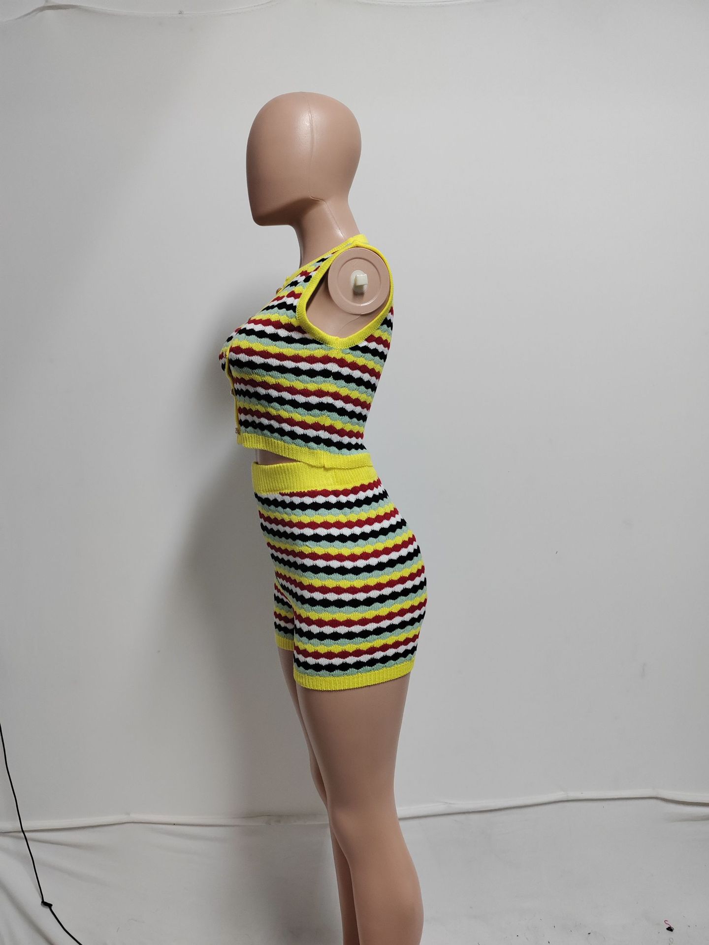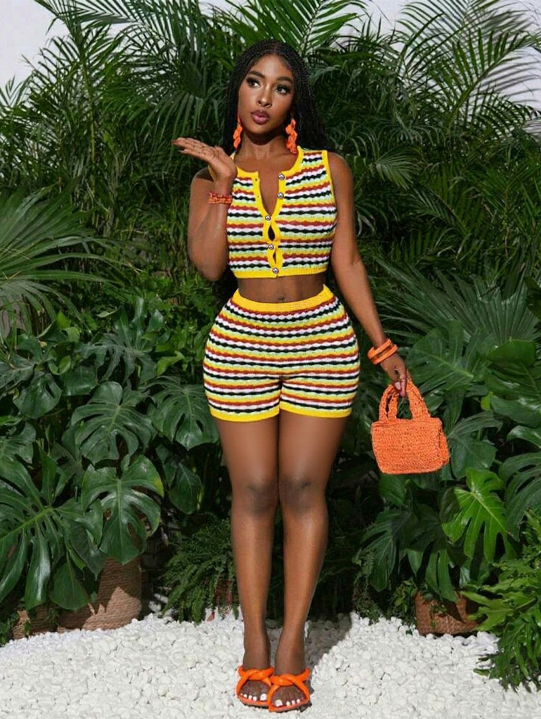 Stylish Design: Trendy color-blocking and sleeveless top with matching shorts.